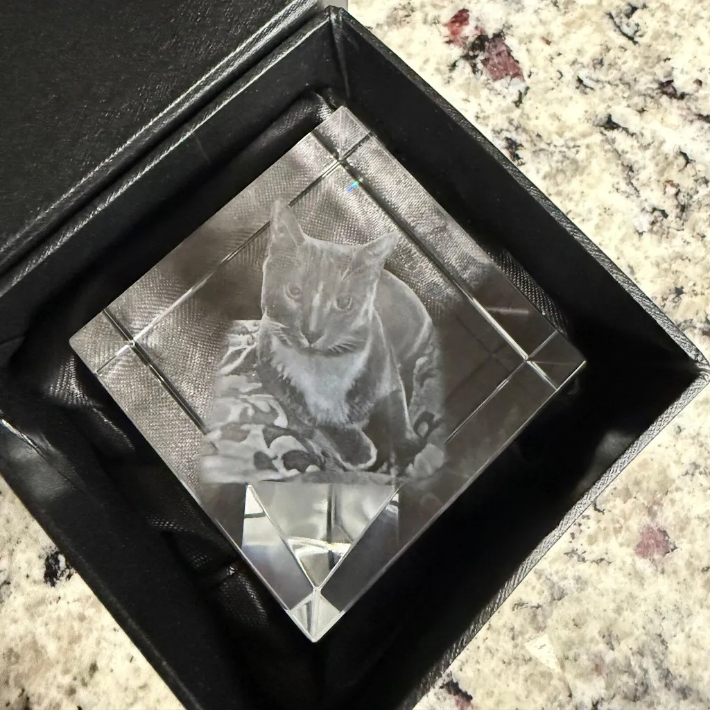 Our instant preview service will create a realistic preview of the final form of your crystal after you upload your picture. This is computer-generated, and the final form may be slightly different.