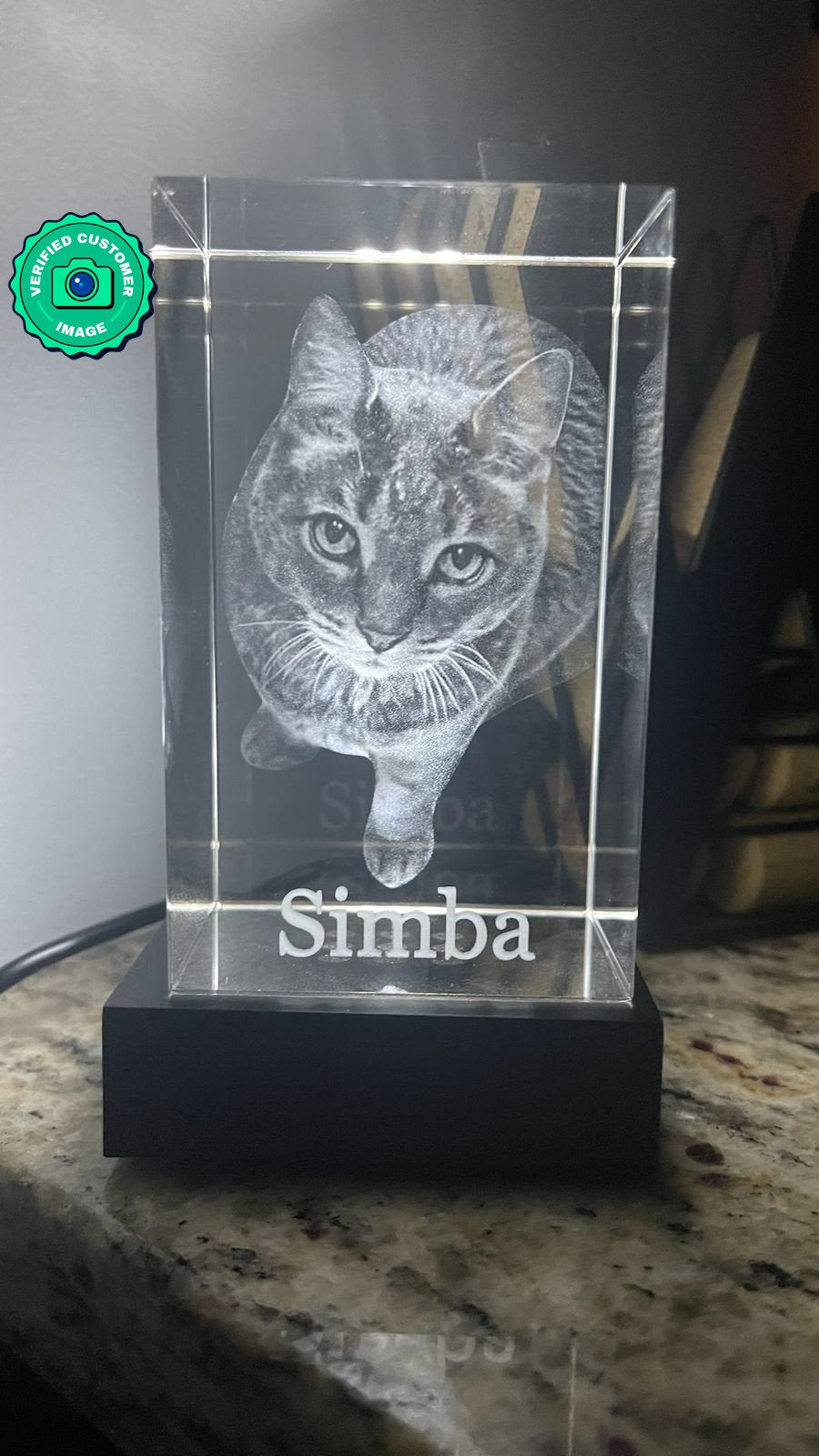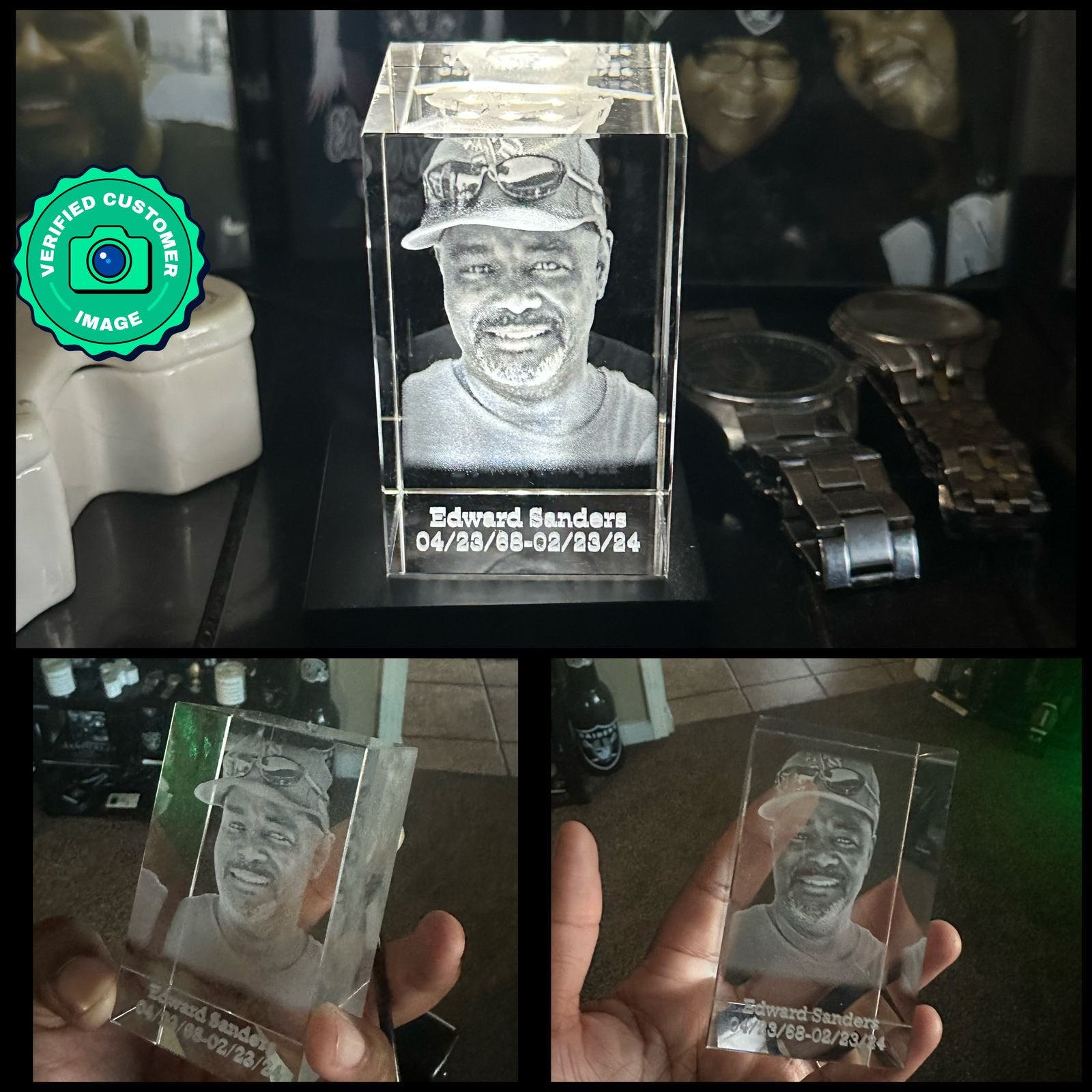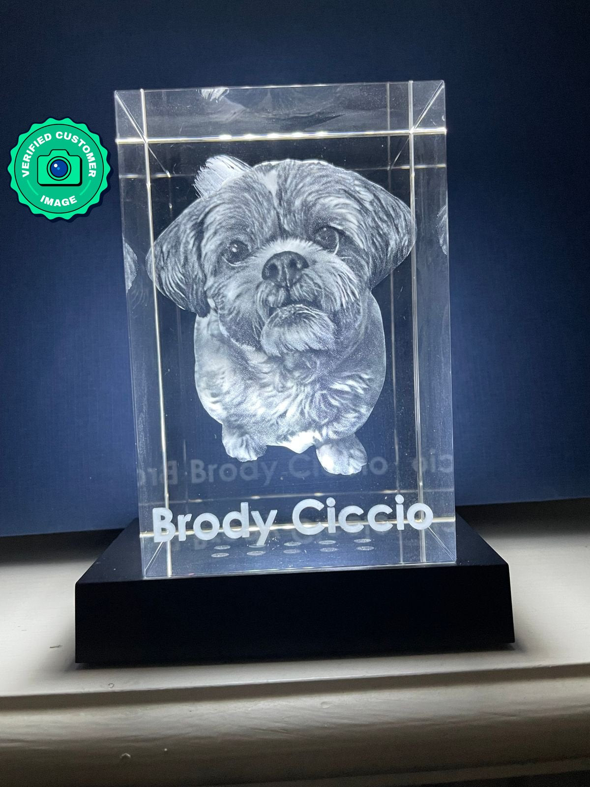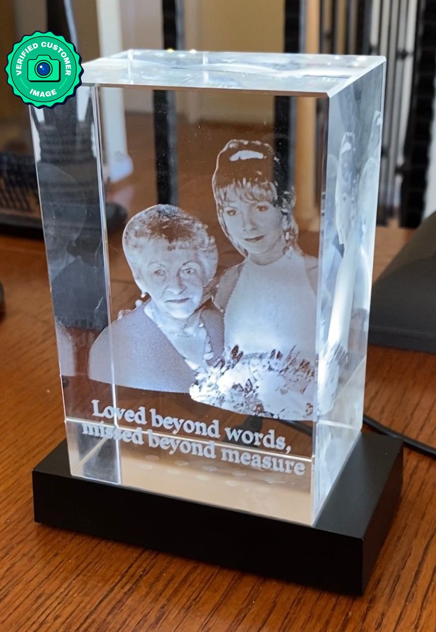 Our instant preview service will create a realistic preview of the final form of your crystal after you upload your picture. This is computer-generated, and the final form may be slightly different.